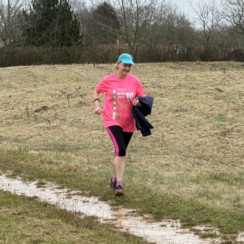 Heading into Norfolk, Witham RC made its debut at Dereham parkrun for a very slippery and muddy course. It was visited by Steven Alder (29:35), Andrew Read (33:18 with Bevan) and Angela Read (34:08 pictured in the May Day 10 T-shirt). They went and had breakfast at Dereham Windmill afterwards before heading off.